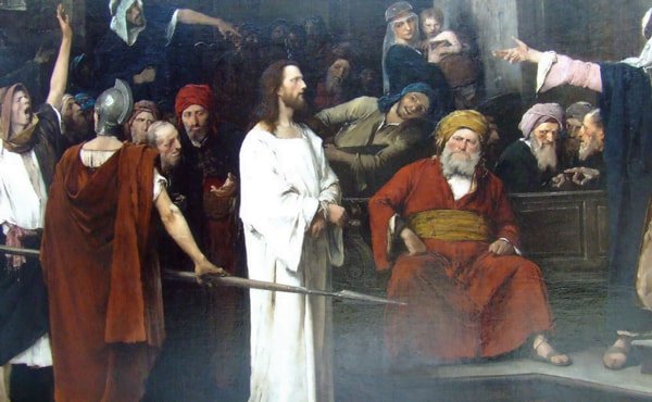 As coisas estavam desta forma e trasladaram a causa a Pilatos, e o contencioso legal contra Jesus foi levado perante a autoridade romana. Perante Pilatos se apresentaram os temores de que aquele que falava de um “reino" poderia se um perigo para Roma. O procurador tinha diante dele duas formas possíveis para enfrentar a situação. Uma delas, o coercitio (“castigo, medida de força") que lhe outorgava a capacidade de aplicar as medidas oportunas para manter a ordem pública. Amparando-se nela poderia infligir lhe um castigo exemplar ou incluso ter lhe condenado a morte para que servisse como correção. Ou ainda, poderia estabelecer um coginitio (“conhecimento"), um processo formal em que se formulava a acusação, havia um interrogatório e se ditava uma sentença de acordo com a lei.