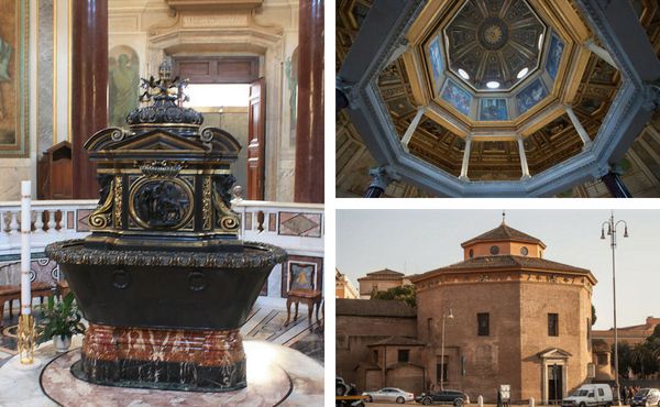 A piscina circular onde antigamente os cristãos eram batizados por imersão fica no centro, rodeada por oito formosas colunas de pórfiro com capitéis jônicos e coríntios. Essas colunas sustentam uma arquitrave, que tem inscritos uns versos em latim, atribuídos ao Papa São Sisto III (432-440), onde se resume, de forma admirável, a doutrina cristã sobre o Batismo. Soam tão magnificamente, que vale a pena lê-los na língua original. Acrescentamos a tradução abaixo.