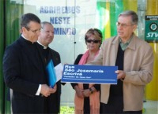 A iniciativa partiu do vereador João Carlos Nedel. Desde 1999, Nedel pleiteia um local para homenagear o santo, que viveu em Roma até o seu falecimento em 1975 e que esteve no Brasil em 1974. A demora, segundo ele, foi providencial. “Dessa forma pudemos dar à rua a denominação de São Josemaria, e não simplesmente Beato”, entusiasma-se. O projeto de lei teve aprovação unânime da Câmara de Vereadores de Porto Alegre. A placa foi descerrada na presença de cerca de 60 pessoas, entre autoridades eclesiásticas, estudantes, empresários e profissionais diversos. Estavam presentes também representantes do Bairro Jardim do Salso, e o pároco da região onde a rua se encontra, Pe. Roberto Paz. O clima que pairava entre os presentes era de família, bem ao estilo pregado pelo fundador. Uma réplica da placa ficará no Centro Cultural Mirador, onde se realizam as atividades promovidas pela instituição. Na solenidade, Pe. Paulo Penteado de Castro, representando a Prelazia, apontou como principal virtude do Fundador a humildade: “Quando vivo, São Josemaria nunca pensou em ter uma rua em sua homenagem. Seu lema era ‘ocultar-se e desaparecer’. Bastava somente que Jesus brilhasse”, disse.