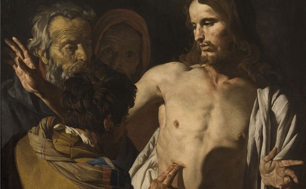 Depois, muito conhecida e até proverbial é a cena de Tomé incrédulo, que aconteceu oito dias depois da Páscoa. Num primeiro momento, ele não tinha acreditado em Jesus que apareceu na sua ausência, e dissera: "Se eu não vir o sinal dos pregos nas suas mãos e não meter o meu dedo nesse sinal dos pregos e a minha mão no seu peito, não acredito" (Jo 20, 25). No fundo, destas palavras sobressai a convicção de que Jesus já é reconhecível não tanto pelo rosto quanto pelas chagas. Tomé considera que os sinais qualificadores da identidade de Jesus são agora sobretudo as chagas, nas quais se revela até que ponto Ele nos amou. Nisto o Apóstolo não se engana. Como sabemos, oito dias depois Jesus aparece no meio dos seus discípulos, e desta vez Tomé está presente. E Jesus interpela-o: "Põe teu dedo aqui e vê minhas mãos! Estende tua mão e põe-na no meu lado e não sejas incrédulo, mas crê!" (Jo 20, 27). Tomé reage com a profissão de fé mais maravilhosa de todo o Novo Testamento: "Meu Senhor e meu Deus!" (Jo 20, 28). A este propósito, Santo Agostinho comenta: Tomé via e tocava o homem, mas confessava a sua fé em Deus, que não via nem tocava. Mas o que via e tocava levava-o a crer naquilo de que até àquele momento tinha duvidado" (In Iohann. 121, 5). O evangelista prossegue com uma última palavra de Jesus a Tomé: "Porque me viste, acreditaste. Felizes os que, sem terem visto, crerão" (cf. Jo 20, 29). Esta frase também se pode conjugar no presente; "Bem-aventurados os que creem sem terem visto".