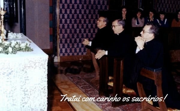 Quando era o único sacerdote do Opus Dei, ocupava-se pessoalmente de limpar por dentro os sacrários dos nossos Centros. Costumava fazê-lo cada quinze dias, por ocasião das suas viagens fora de Madrid. Enquanto os limpava, falava ininterruptamente com Jesus Sacramentado, repetindo-lhe que todas aquelas delicadezas eram para Ele. Exortava-nos: "Tratai os sacrários com um carinho cuidadoso!" Quando deixou de ocupar-se deste dever pessoalmente, ensinou os seus filhos sacerdotes a cumpri-lo com o maior cuidado e a recitar nesses momentos muitas jaculatórias e comunhões espirituais.
