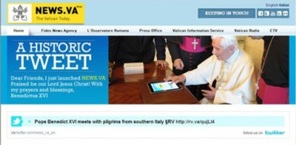 Bento XVI anunciou o início das operações do novo portal através de uma mensagem em inglês publicada na conta do Twitter dos meios de comunicação da Santa Sé (@news_ va_ en): “Queridos amigos, acabo de lançar o portal NEWS.VA. Louvado seja Nosso Senhor Jesus Cristo! Com minhas preces e bênçãos, Bento XVI”. Quem quiser seguir o dia a dia do papa e do Vaticano pode seguir @news_va_pt (em português). O endereço do site de notícias é https://www.news.va/.