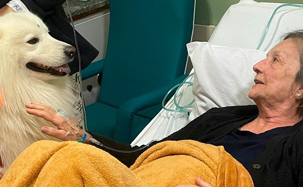 Já havia num hospital da cidade um cão que era levado para essa atividade, chamado Oto. Mas Oto foi levado para outra cidade. Pensamos então no nosso Zeus. Começamos a fazer essas visitas e tanto os pacientes adultos e mais velhos, como crianças disfrutam muito da companhia do animal, que além disso é muito bonito e manso.