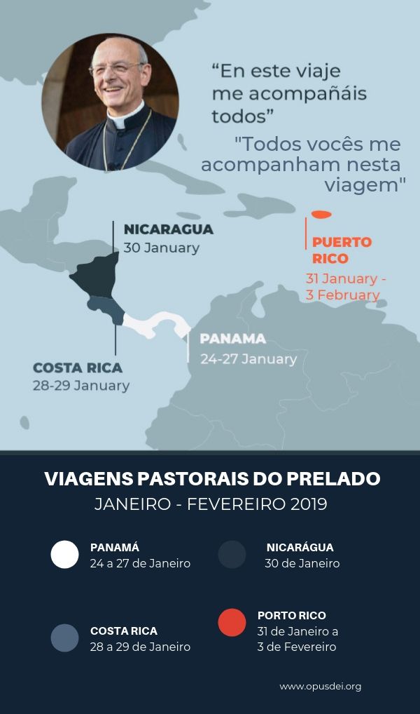 O Prelado do Opus Dei chegou ao Aeroporto Internacional Luis Muñoz Marín, em San Juan, Porto Rico, às 16h05min, para uma visita pastoral até domingo, 3 de fevereiro.