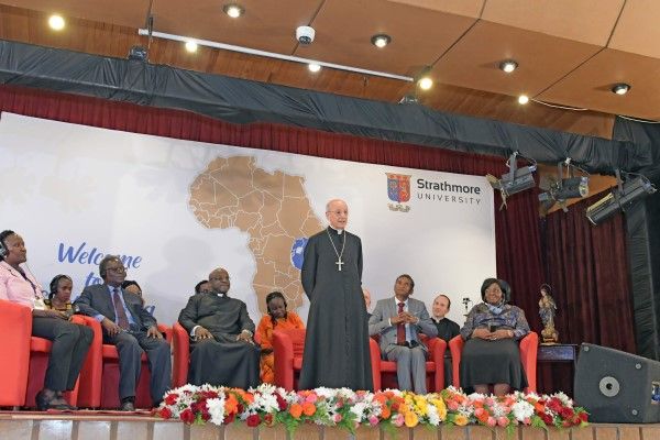 Durante as perguntas, a Dra. Magdalene Dimba perguntou ao prelado como usar a pesquisa acadêmica para contribuir com o crescimento do país em todas as áreas. Na mesma linha, Philip queria saber como colaborar com a melhoria social das pessoas que moram em bairros de periferia. Ian Wairua entregou ao Padre, em nome de todos, um livro sobre o Quênia e três girafas de cristal kitengela, e perguntou como ajudar os alunos no uso responsável das redes sociais. O prelado respondeu que a chave é ensiná-los a usar bem a sua liberdade para tomar as decisões corretas e que a verdadeira amizade é sempre um contato real, físico e não virtual. Em seguida, o prelado abençoou a imagem de São José no Santuário da Sagrada Família e plantou uma árvore como lembrança da visita.
