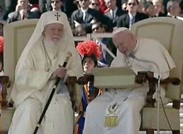 Para muitos dos fiéis que assistiram à missa de Ação de Graças no dia 7 de Outubro de 2002 na Praça de São Pedro, a visita de Sua Beatitude Teoctist, Patriarca da Igreja ortodoxa romena, no final da audiência com o Santo Padre, foi uma surpresa. Contudo – e sem qualquer dúvida – para João Paulo II foi uma visita muito desejada. O histórico abraço em que se fundiram o Romano Pontífice e o Chefe da Igreja ortodoxa romena foi o motivo pelo qual os mais de 200 000 assistentes romperam num aplauso sentido. Ao presenciar este fato, todos sonhávamos vendo a Igreja – como disse o Papa por diversas vezes – respirar com os dois pulmões.
