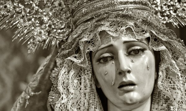 São João Paulo II lembrava de Maria, peregrina silenciosa rumo a “noite da fé”[1]. Como não aplicar a ela as palavras da Escritura: “olhai e julgai se existe dor igual à dor que me atormenta” (Lm 1,12)? No Gólgota, Maria sente a espada que atravessa a sua alma, anunciada pelo velho Simeão. E, em união com a obra redentora do Filho, ela se torna a Mãe que dá à luz todo cristão, todo discípulo de Jesus. Hoje, podemos dizer à nossa Mãe as palavras que a liturgia aplica a ela, extraídas das Escrituras, quando o povo exaltou Judite que salvou Israel do poder do inimigo babilônico: “Tu és a glória de Jerusalém, Tu és a alegria de Israel, tu és a honra de nosso povo” (Jd 15,9). O amor à Mãe obtém para nós a graça abundante de sermos fiéis aos mandatos de Cristo e nos liberta das armadilhas do maldito[2].