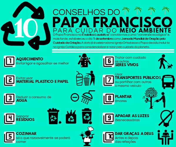 Partilhamos alguns conselhos concretos com que o Santo Padre nos alenta a colaborar para proteger e construir a nossa casa comum, pequenas ações que derramam um bem na sociedade “para além do que se possa constatar, porque provocam no seio desta terra um bem que sempre tende a difundir-se, por vezes invisivelmente”.