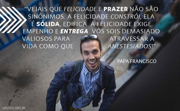 uma coisa é a felicidade e o júbilo… e outra coisa é um prazer passageiro. A felicidade constrói, é sólida, edifica. A felicidade exige empenho e entrega.