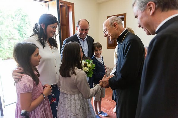 Mons. Fernando Ocáriz saudou também três das primeiras mulheres da Obra em Portugal: Judite, Guilhermina e Glória. Falou com o casal Maria José e Luís que estavam acompanhados da família.