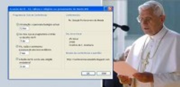 Tendo por base o pensamento de Bento XVI, estão a ser organizadas um conjunto de conferências sobre Fé, cultura e religiões no Oratório S.Josemaria (Lisboa). As conferências têm periodicidade mensal e estão a cargo do Pe. Gonçalo Portocarrero de Almada.