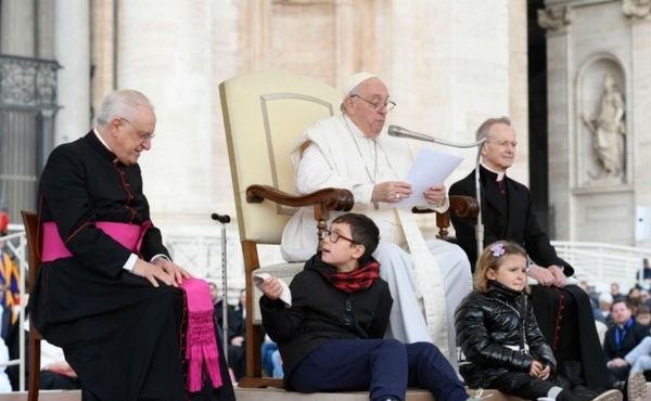 Antes de falar sobre o que preparei, gostaria de chamar a atenção sobre estes dois jovens que vieram aqui. Eles não pediram licença, não disseram: “Ah, tenho medo”: vieram diretamente. Nós devemos ser assim com Deus: diretamente. Eles deram-nos o exemplo de como nos devemos comportar com Deus, com o Senhor: ir em frente! Ele espera-nos sempre. Fez-me bem ver a confiança destes dois meninos: foi um exemplo para todos nós. Assim devemos aproximar-nos sempre do Senhor: com liberdade. Obrigado.