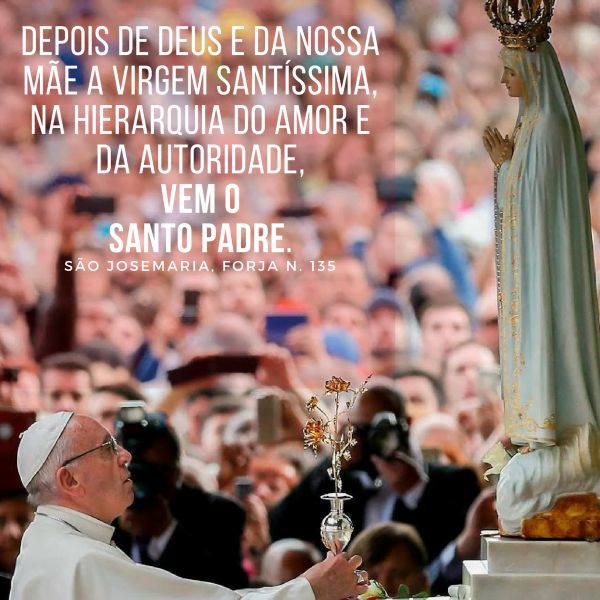 1. «(...) depois de Deus e da nossa Mãe a Virgem Santíssima, na hierarquia do amor e da autoridade, vem o Santo Padre». Forja, n. 135.