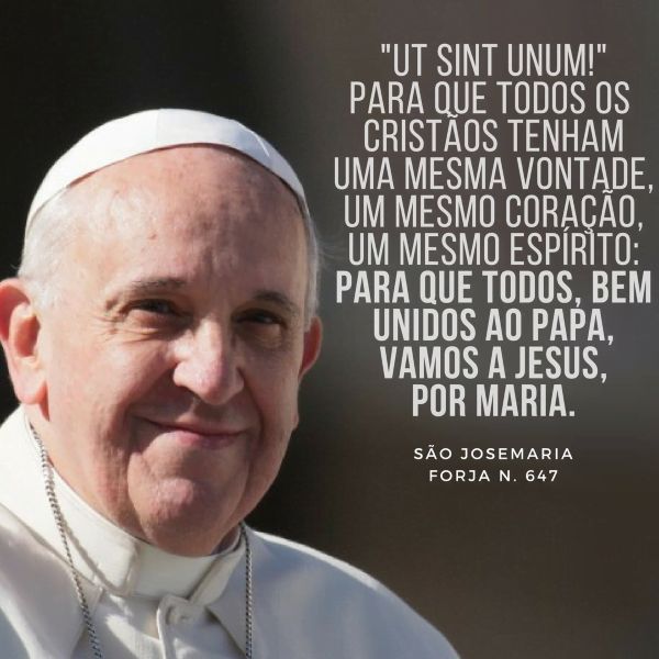 4. «"ut sint unum!", para que todos os cristãos tenham uma mesma vontade, um mesmo coração, um mesmo espírito: para que "omnes cum Petro ad Iesum per Mariam!", todos, bem unidos ao Papa, vamos a Jesus, por Maria» Forja, n. 647.