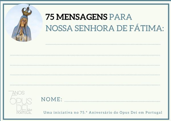 Pensei nesse momento que os jovens poderiam levar mensagens dos menos jovens. Pensei no número 75 e nos 75 anos do Opus Dei em Portugal. Se calhar haveria 75.000 pessoas que gostavam de o fazer, mas tenho ao meu alcance pedir estas 75 mensagens.