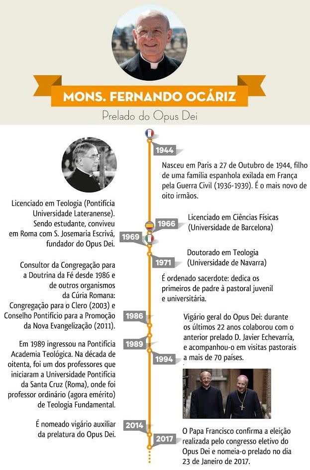 Mons. Fernando Ocáriz nasceu em Paris a 27 de Outubro de 1944, filho de uma família espanhola exilada em França pela Guerra Civil (1936-1939). É o mais novo de oito irmãos.