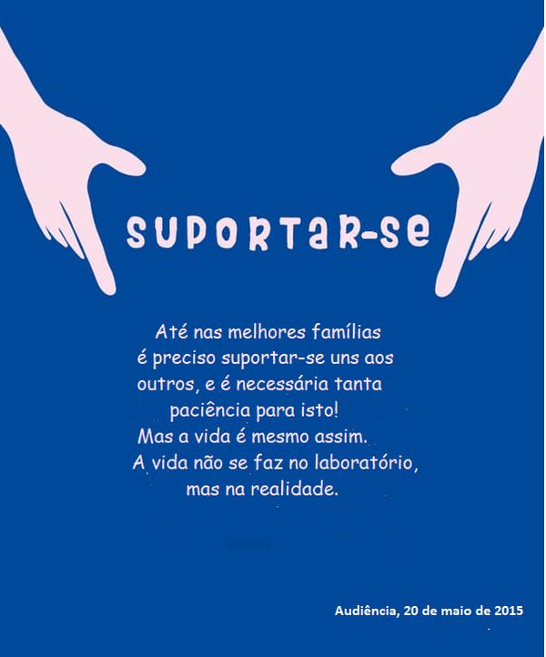 3. Até nas melhores famílias é preciso suportar-se uns aos outros, e é necessária tanta paciência para isto! Mas a vida é mesmo assim. A vida não se faz no laboratório, mas na realidade. Audiência, 20 de maio de 2015