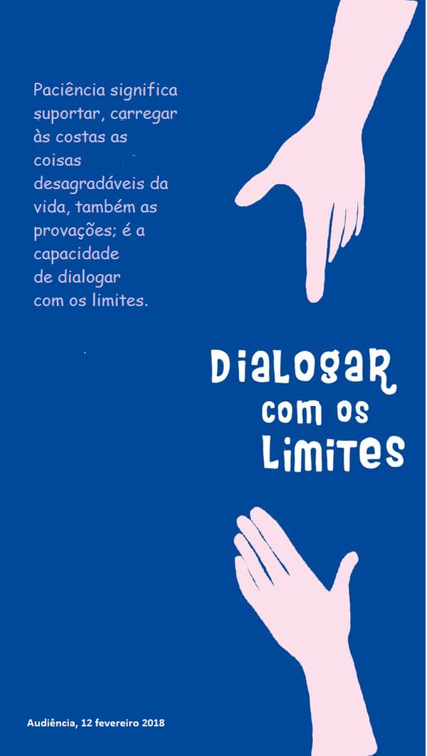 1. Paciência significa suportar, carregar às costas as coisas desagradáveis da vida, também as provações; é a capacidade de dialogar com os limites. Meditações Matutinas, 12 de fevereiro de 2018