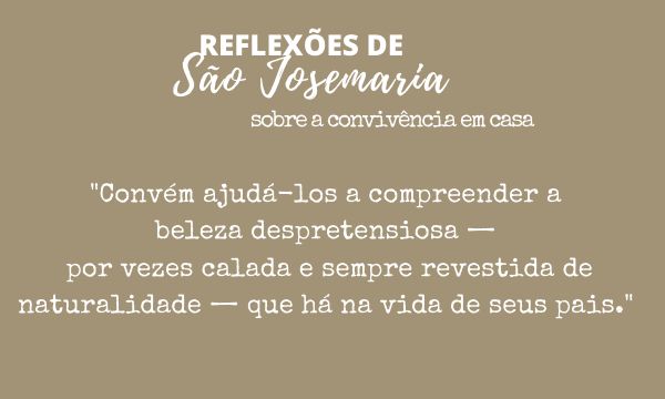 “Mas nem tudo depende dos pais. Os filhos também têm que fazer alguma coisa da sua parte. A juventude sempre teve uma grande capacidade de entusiasmo por todas as coisas grandes, pelos ideais elevados, por tudo o que é autêntico. Convém ajudá-los a compreender a beleza despretensiosa — por vezes calada e sempre revestida de naturalidade — que há na vida de seus pais. Que reparem, sem que isso lhes cause tristeza, no sacrifício que fizeram por eles, na sua abnegação — muitas vezes heroica — para manterem a família. Aprendam também a não dramatizar, a não representar o papel de incompreendidos. Não esqueçam que estarão sempre em dívida com os seus pais e que o modo de corresponderem — já que não podem pagar o que devem — deve ser o respeito, o carinho grato, filial.