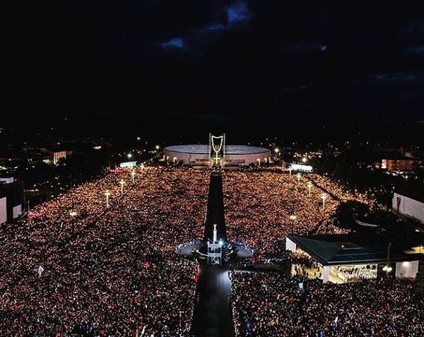Esta bênção cumpriu-se cabalmente na Virgem Maria, pois nenhuma outra criatura viu brilhar sobre si a face de Deus como Ela, que deu um rosto humano ao Filho do eterno Pai, podendo nós agora contemplá-Lo nos sucessivos momentos gozosos, luminosos, dolorosos e gloriosos da sua vida, que repassamos na recitação do Rosário. Com Cristo e Maria, permaneçamos em Deus. Na verdade, «se queremos ser cristãos, devemos ser marianos; isto é, devemos reconhecer a relação essencial, vital e providencial que une Nossa Senhora a Jesus e que nos abre o caminho que leva a Ele» (Paulo VI, Alocução na visita ao Santuário de Nossa Senhora de Bonaria-Cagliari, 24/IV/1970). Assim, sempre que rezamos o Terço, neste lugar bendito como em qualquer outro lugar, o Evangelho retoma o seu caminho na vida de cada um, das famílias, dos povos e do mundo.