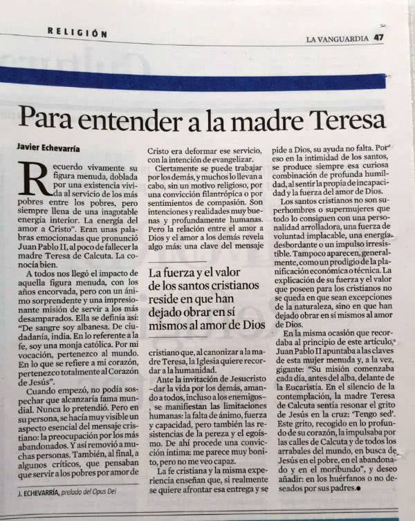 La Vanguardia Para entender a la Madre Teresa (Descarga en formato PDF)