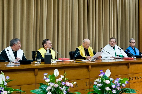 Os Estatutos desta Universidade estabelecem que "por meio da pesquisa, do estudo e do ensino das Ciências Eclesiásticas (...) a Universidade pretende servir a Igreja em plena e fiel união com o seu Magistério, cooperando assim com o Romano Pontífice na preocupação por todas as Igrejas [1]. Nestes dias, em que se está a celebrar um sínodo que tem a ver com a missão, é lógico considerar que todo o sistema universitário está intimamente ligado à missão evangelizadora da Igreja, chamada a expandir-se não apenas em toda a geografia , mas no fundo de cada homem e no coração de toda a cultura [2].