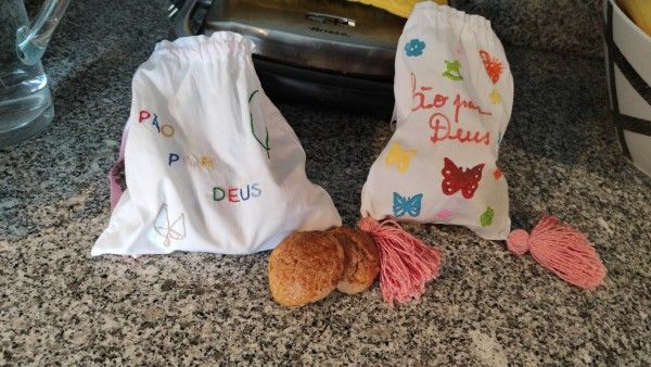 As crianças, quando pedem o “Pão por Deus” recitam versos e recebem como oferenda pão, broas, romã, broas, frutos secos, etc que colocam dentro do seu saco de pano.