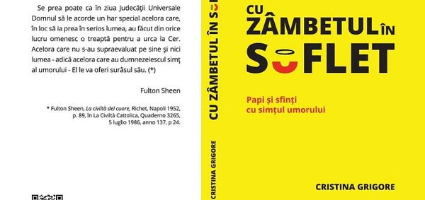 „Cu zâmbetul în suflet. Papi și sfinți cu simțul umorului” este titlul cărții pe care a publicat-o editura Serafica. Este vorba despre o colecție de texte și anecdote care arată cu naturalețe simțul umorului pe care l-au dobândit unii sfinți și alte persoane care s-au remarcat printr-o viață sfântă. Printre alții, îi citează pe Sf. Ioan al XXIII-lea, pe Sf. Ioan Paul al II-lea, pe Papa Francisc și pe Sfântul Josemaría, care le scrisese fiilor lui spirtituali: „Omește vorbind, aș vrea ca moștenirea pe care o las să fie dragostea pentru libertatea și buna dispoziție” (Scrisoare din 31 martie 1954).