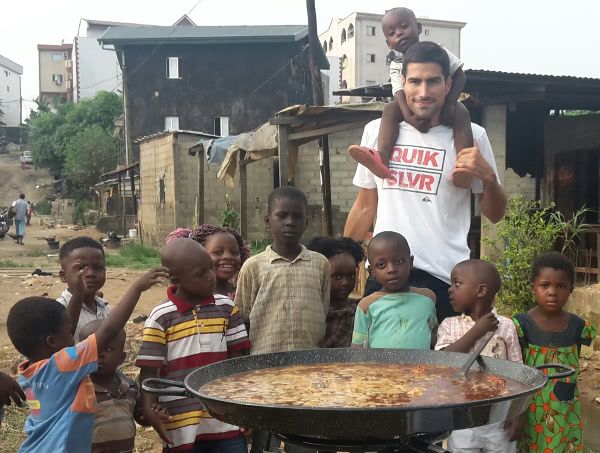 Camerunezii iubesc paella, mai ales copiii. În cele două ore în care Pedro pregătește orezul, băiețeii înconjură wokul. Cât timp bucătarul aruncă ingredientele neîncetat, se cântă, se dansează și se spun glume, deoarece în Africa totul se face cu veselie.