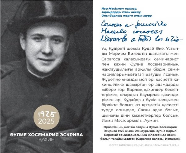 28 марта 2025 года исполняется 100 лет со дня священнического рукоположения Святого Хосемарии. В нескольких местах организовали литургические и академические мероприятия. К этой годовщине мы представляем памятную печать на Казахском языке с молитвой для получения призваний к семинарии.