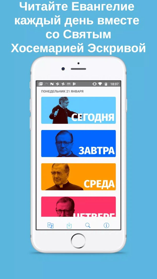 Чаще читать и размышлять над Евангелием дня - это хороший способ лучше узнать Иисуса Христа и услышать Его послание на день. Святой Хосемария советовал, что когда мы читаем евангельские отрывки, мы должны читать их, помещая себя в сцены, как других героев. Очень скоро мне захотелось узнать, что написал святой Хосемария об отрывках из Евангелия, и мне пришла в голову мысль: Для этого должно быть приложение!