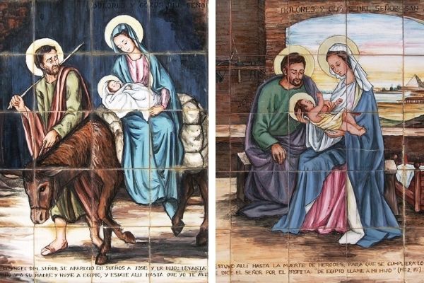 Piata bolesť: Po ich odchode sa Jozefovi vo sne zjavil Pánov anjel a povedal: „Vstaň, vezmi so sebou dieťa i jeho matku, ujdi do Egypta a zostaň tam, kým ti nedám vedieť, lebo Herodes bude hľadať dieťa, aby ho zmárnil. (Mt 2,13)