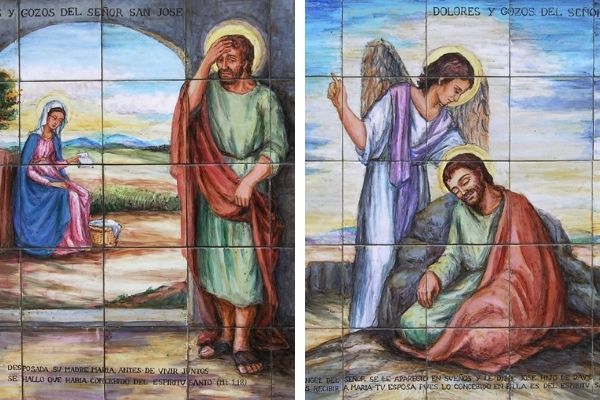 Prvá radosť: Ako uvažoval prepustiť Máriu, zjavil sa mu vo sne Pánov anjel a povedal: „Jozef, syn Dávidov, neboj sa prijať Máriu, svoju manželku, lebo to, čo sa v nej počalo, je z Ducha Svätého. Porodí syna a dáš mu meno Ježiš.“ (Mt 1,20-21)
