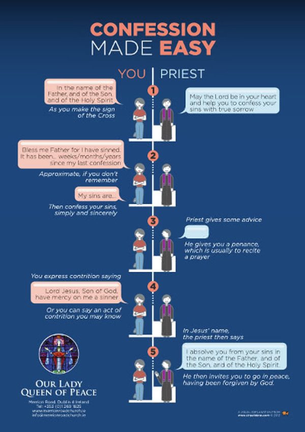 Vo farnosti Panny Márie Kráľovnej Pokoja v Dubline, ktorá je zverená do pastoračnej starostlivosti Prelatúre Opus Dei, miestny farár Fergus O’Connor ponúka svojim farníkom jednoduchý a jasný grafický návod, ako presne pristúpiť k sviatosti zmierenia. Na druhej strane návodu je niekoľko otázok, ktoré môžu pomôcť veriacim vykonať si dobré spytovanie svedomia. Mnohí farníci pozitívne reagovali na túto iniciatívu a pomôcku aj využili pred spoveďou.