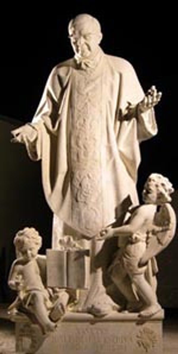 Socha je instalována ve vnějším výklenku basiliky vedle jiných soch stejných rozměrů: Sv. Terezie z And, sv. Marcelina Champagnata, Sv. Řehoře z Arménie a dalších. Jan Pavel II. zamýšlel, aby byly výklenky v této části basiliky obsazeny světci a zakladateli naší doby.
