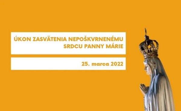 Teraz, prijímajúc aj početné žiadosti Božieho ľudu, chcem osobitným spôsobom zveriť Panne Márii národy v konflikte. Ako som povedal včera na konci modlitby Anjel Pána, 25. marca, na slávnosť Zvestovania Panny Márie, mám v úmysle vykonať slávnostný akt zasvätenia ľudstva, najmä Ruska a Ukrajiny, Nepoškvrnenému Srdcu Panny Márie. Pretože je dobré, aby sme sa pri prosení o pokoj disponovali tak, že sa obnovíme Božím odpustením, bude sa tento akt konať v rámci slávenia kajúcej pobožnosti, ktorá sa uskutoční v Bazilike svätého Petra o 17.00 hod. rímskeho času. Akt zasvätenia je naplánovaný približne na 18.30 hod.