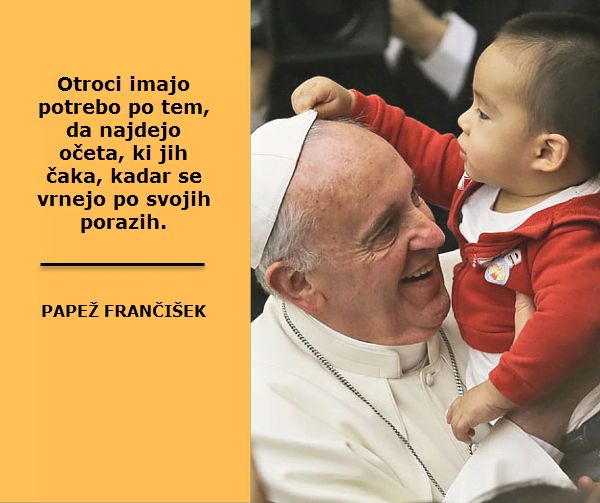 17. Otroci imajo potrebo po tem, da najdejo očeta, ki jih čaka, kadar se vrnejo po svojih porazih. Naredili bodo vse, da tega ne bi priznali, da se ne bi opazilo, vendar to potrebujejo. Če pa tega ne najdejo, se v njih odprejo rane, ki se le stežka zacelijo. (14. februar 2015)