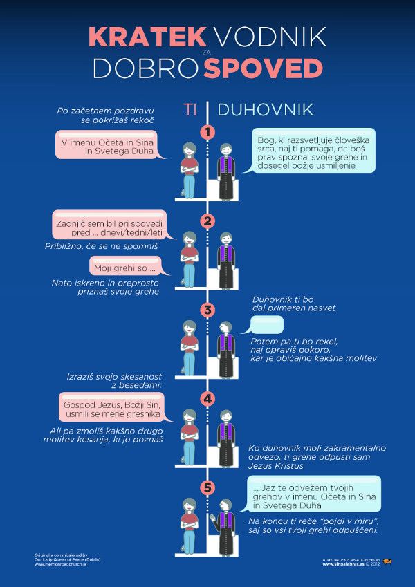 Na Irskem, v neki dublinski župniji, ki je zaupana duhovnikom Prelature Opus Dei, so pripravili grafičen prikaz korakov, ki sestavljajo zakrament pokore. Kratek vodnik za dobro spoved vključuje tudi spraševanje vesti v obliki vprašanj, ki so razdeljena v tri sklope: za odrasle, mlade in otroke. Po zaslugi te iniciative so se mnogi približali k zakramentu sprave.