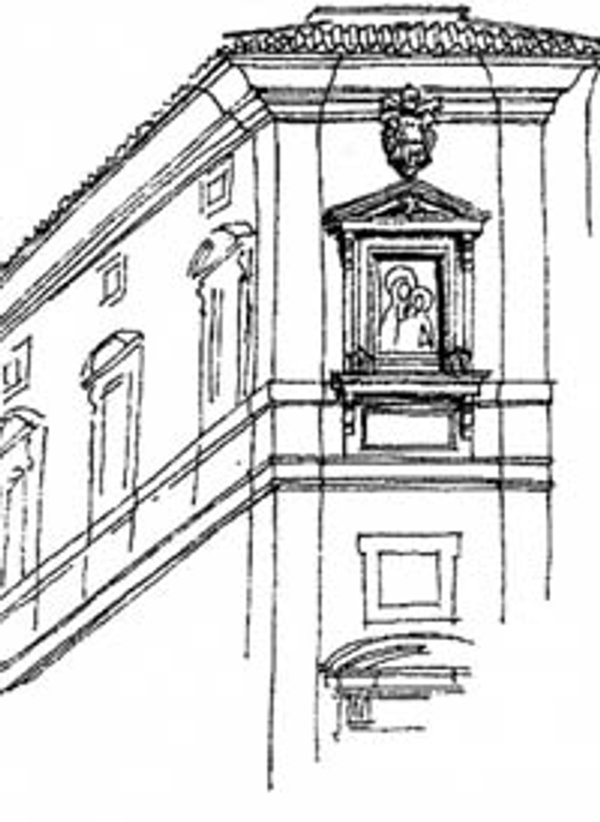 Po več tednih, potem ko sem velikokrat obiskal trg, da bi poiskal različne rešitve, sem msgr. del Portillu predstavil eno od možnosti skupaj z ustreznimi skicami in fotomontažami: šlo bi za zamenjavo enega izmed oken na stavbi, ki se nahaja med Cortile di San Damaso in trgom, z Marijinim mozaikom.