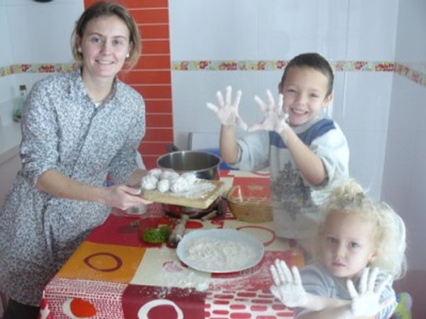 Det är framför allt en fråga om ordning, organisation och samarbete med min man. Alltsedan vi gifte oss, har jag arbetat utanför hemmet och har lärt mig att klara av kombinationen av familj och yrke. För att klara det behöver jag förstås hjälp i hushållet. Vår Mariela hjälper mig också med att ta hand om de små, som ännu inte går i skolan. På det sättet blir det ordning och stabilitet i familjen. Min man och jag har organiserat vårt liv så, att jag har tillräckligt med tid för barnen. Jag tar hand om de äldres läxor, läser med dem och badar de små.