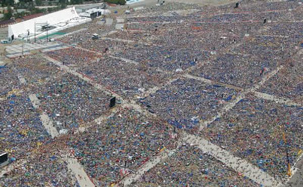 Vi har upplevt ett äventyr tillsammans. Fasta i tron har ni stått ut med regnet. Innan jag ger mig iväg, vill jag önska er alla god natt. Vila er! Tack för offret ni är i färd att göra, jag är säker att ni uppoffrar det åt Herren. Vi ses i morgon, om Gud vill, när vi firar Eukaristin. Jag väntar på er alla. Jag tackar er för det underbara exempel som ni gett. På samma sätt som i kväll, med Kristus kan ni alltid möta livets prövningar. Glöm inte det. Tack till er alla.