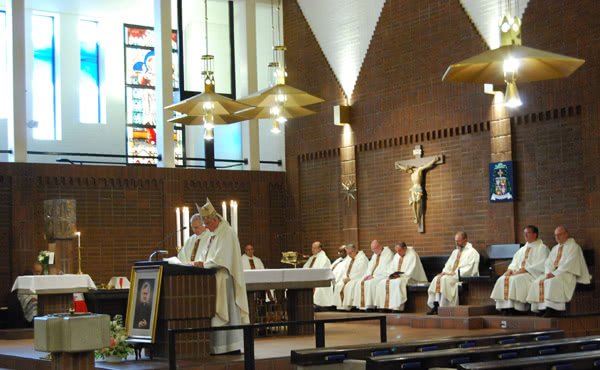 Dessa Herrens ord genljuder varje gång Kyrkan samlas för att fira heligheten hos ett av sina barn. Också idag genljuder de i denna eukaristiska församling när vi firar den fyrtionde årsdagen av den helige Josemaría Escrivás heliga död. Jag hälsar er alla hjärtligt.