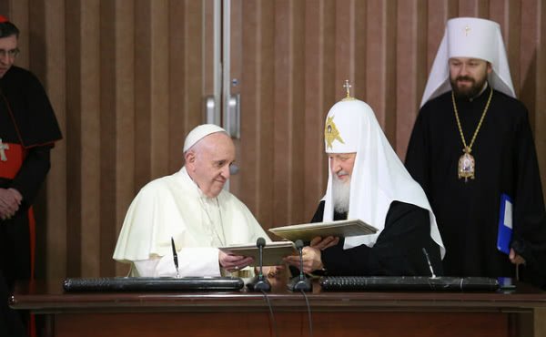 1. Волею Господа Бога, від якого походять всі дари, в ім’я Господа нашого Ісуса Христа, з допомогою Святого Духа Утішителя, ми, Папа Франциск і Кирило, Патріарх Московський та всієї Руси, зустрілися сьогодні в Гавані. Дякуємо Богові, прославляємо Пресвяту Тройцю за цю першу в історії зустріч.