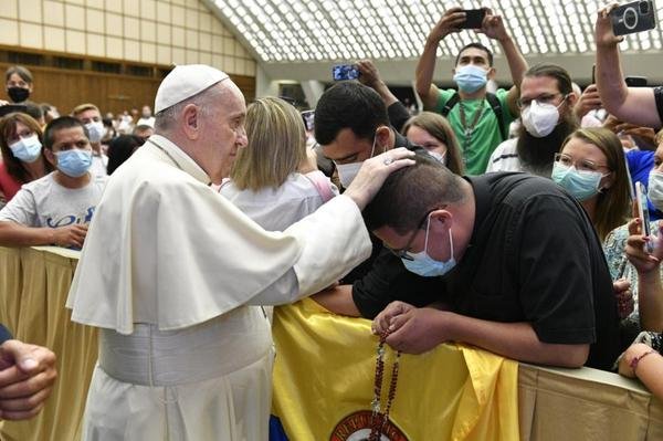 Buổi tiếp kiến bắt đầu với đoạn thư thánh Phao-lô gửi tín hữu Galát (3,23-25): Trước khi đức tin đến, chúng ta bị Lề Luật giam giữ, cho tới khi đức tin được mặc khải. Như thế, Lề Luật đã thành người quản giáo dẫn chúng ta tới Đức Ki-tô, để chúng ta được nên công chính nhờ đức tin. Nhưng khi đức tin đến, thì chúng ta không còn ở dưới quyền giám hộ nữa.