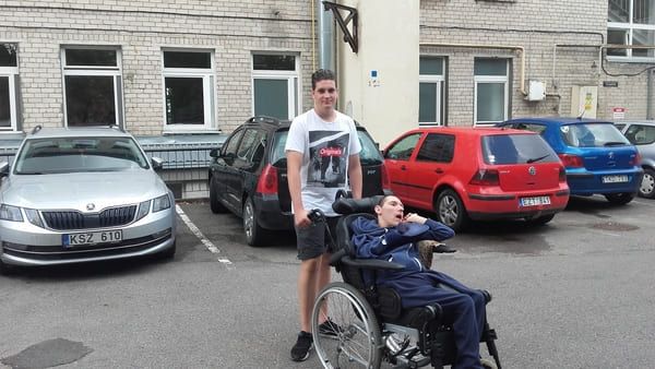 为安排工作,我们分成两组。有一组负责清洁花园和房间,而另一组就陪伴和照顾这些住宿者。早上中段时,我们会交换大家的工作。我们与其他立陶宛年轻人和工作人员一起工作,我们如何与他们沟通?我们(双方)最后都成为身体语言的专家。