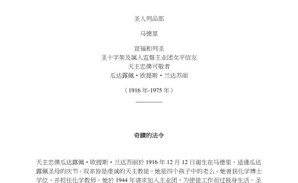 天主忠僕瓜达露佩‧欧提斯‧兰达苏丽於1916年12月12日诞生在马德里,适逢瓜达露佩圣母的庆节。双亲皆是虔诚的天主教徒,她是四个孩子中的老么。她曾获化学博士学位,并担任化学教师。她於1944年请求加入主业团,为使徒工作而过独身生活。圣施礼华派她负责马德里和毕尔包的一些福传项目。她於1950年搬到墨西哥,开始主业团的女性使徒事工。她致力为不同城镇的年轻女性提供人性和基督徒的培育。在 1956年,天主忠僕受邀去罗马协助圣施礼华管理主业团女性使徒工作。由於严重的心脏病,她动了手术,从1958年开始,即住在马德里,在那里她在两座学府任教,并於1965年获得化学博士学位,及研究奖。儘管她的健康状况不佳,但她仍旧热衷於教学,关心同事、学生和朋友,献身於使徒工作。此外,她亦指导一个餐饮培训中心。1975年7月1日,由於心脏病病情恶化,她动了一次风险很高的手术。在康复期间,她忍受突发呼吸系统危机的痛苦,并於7月16日虔敬地将自己的灵魂託付於天主,那天正逢加尔默罗圣母圣衣庆节。2017年,教宗方济各郑重地认可她的英勇德行。