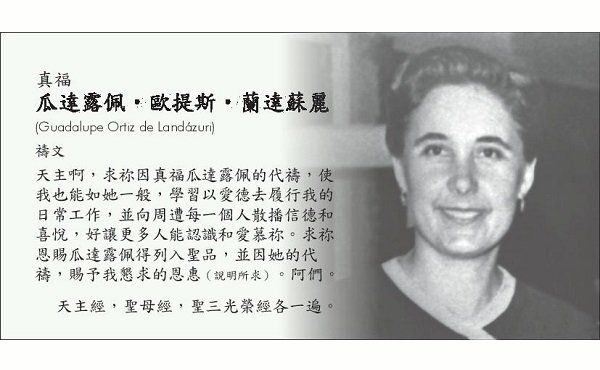 凡因瓜達露佩•歐提斯•蘭達蘇麗的代禱而獲得恩惠者,請通知主業團在東亞區的列品案辦事處:香港 九龍紅磡黃埔花園紅棉苑第四座二樓G室。
