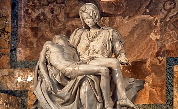 圣母六苦:耶稣圣屍由十字架上卸下,玛利亚抱在怀中。