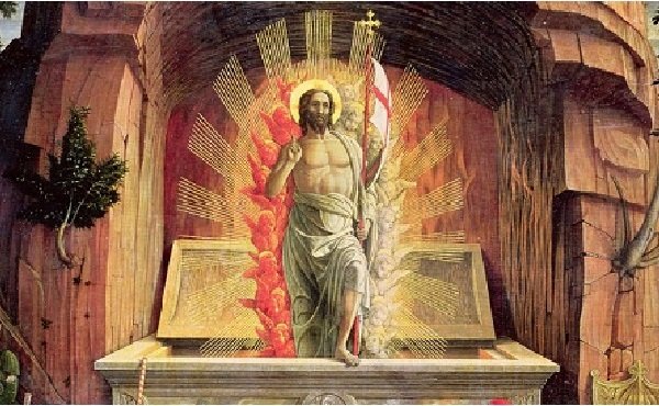 过了安息日,玛利亚玛达肋纳、雅各伯的母亲玛利亚和撒罗默买了香料,要去傅抹耶稣的身体。隔天清早,她们来到墓地那裏,那时,太阳刚升起。(参阅谷16:1-2)当她们进入坟墓后,十分惊慌,因为她们找不到我主的身体。一个穿著白袍的天使对她们说;「你们不要害怕!我知道你们寻找纳匝肋人耶稣:non est hic, surrexit enim sicut dixit. 他不在这里,因为正如他所说的,他复活了。」(参阅玛28:5)