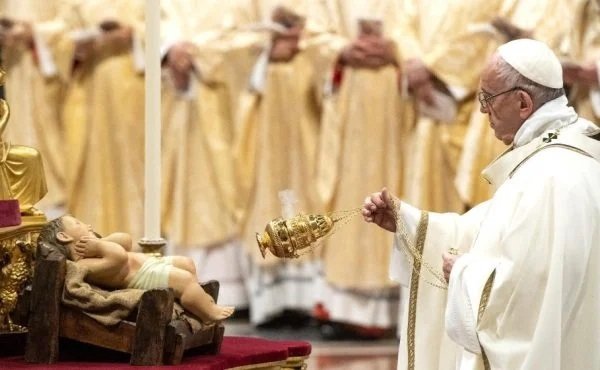 在这圣诞节,我们要“打破贪得无厌的循环”,领受“永不过期”的天上神粮,对上主说:“主啊!祢晓得我爱祢!”教宗方济各12月24晚在梵蒂冈圣伯多禄大殿主持圣诞节子夜隆重弥撒时如此表示。按照传统,弥撒开始前教宗与信众聆听了《圣诞宣报词》(Kalenda),随后来自意大利、中国、巴拿马、刚果民主共和国、罗马尼亚和日本的12名儿童为耶稣圣婴像献花。